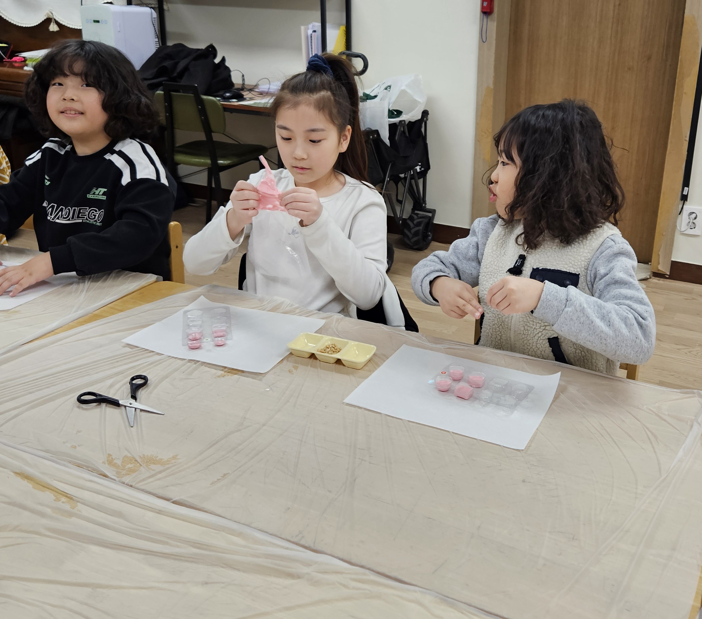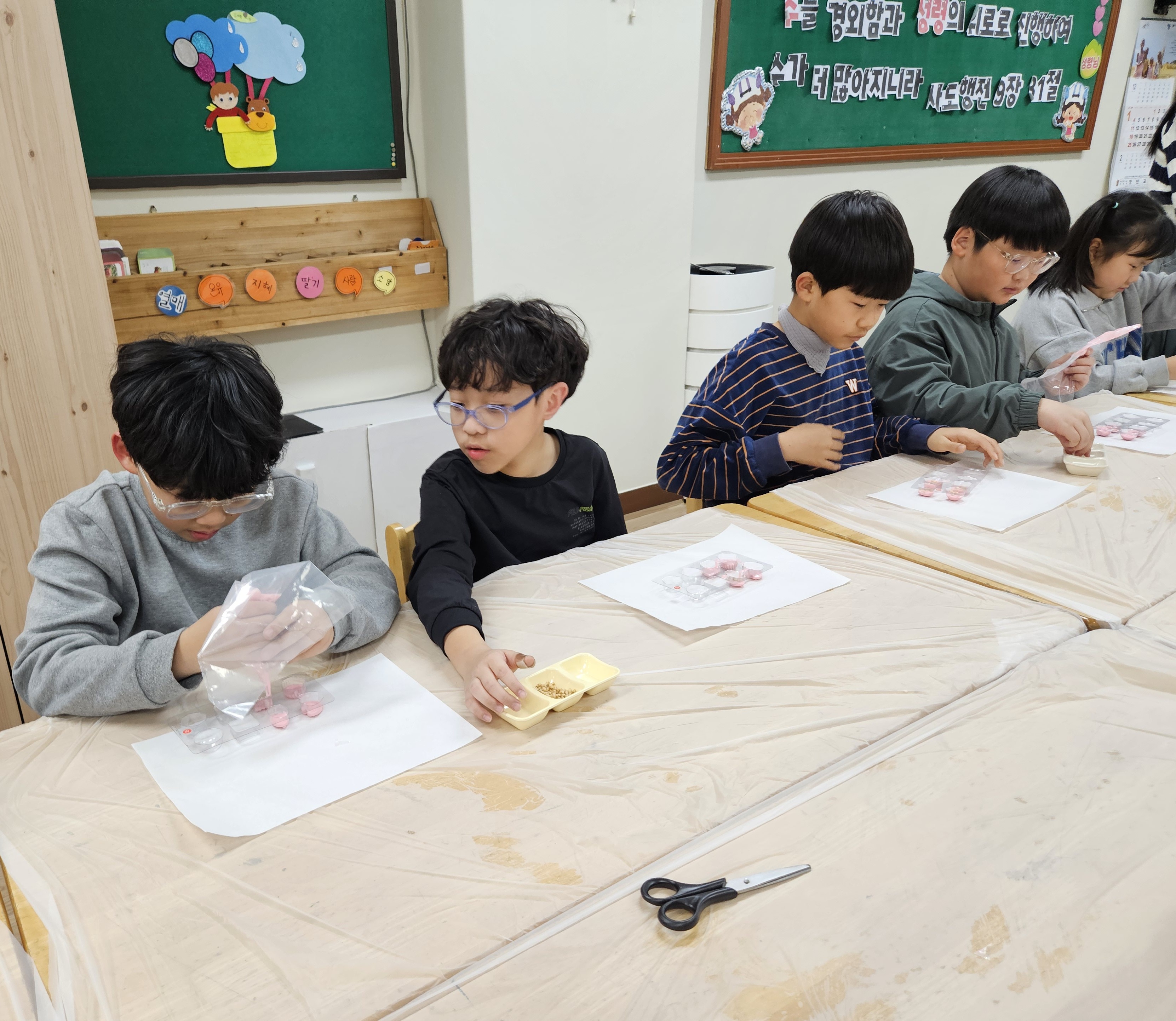 초콜릿 만들기 체험에 참여한 아이들의 활동모습입니다.