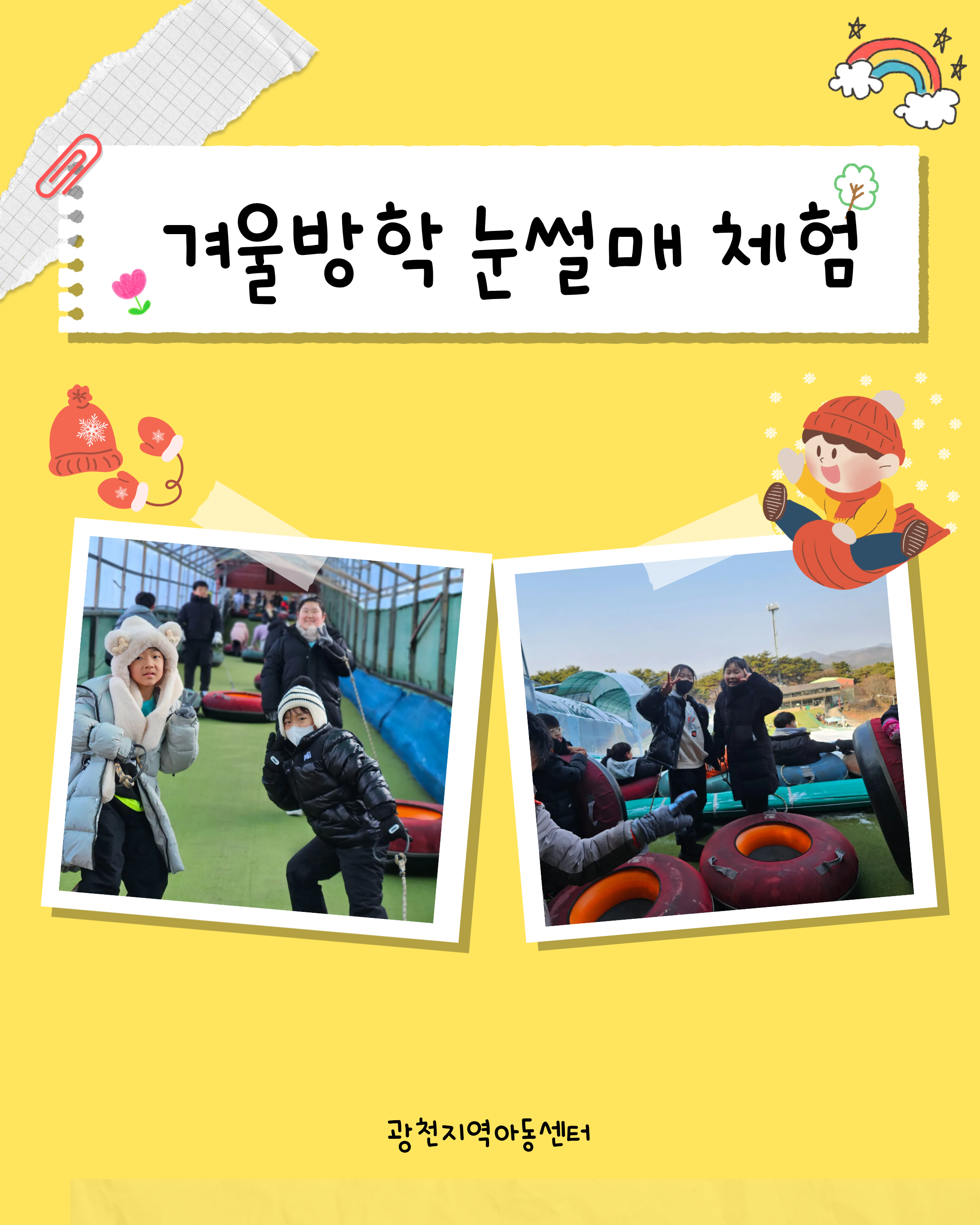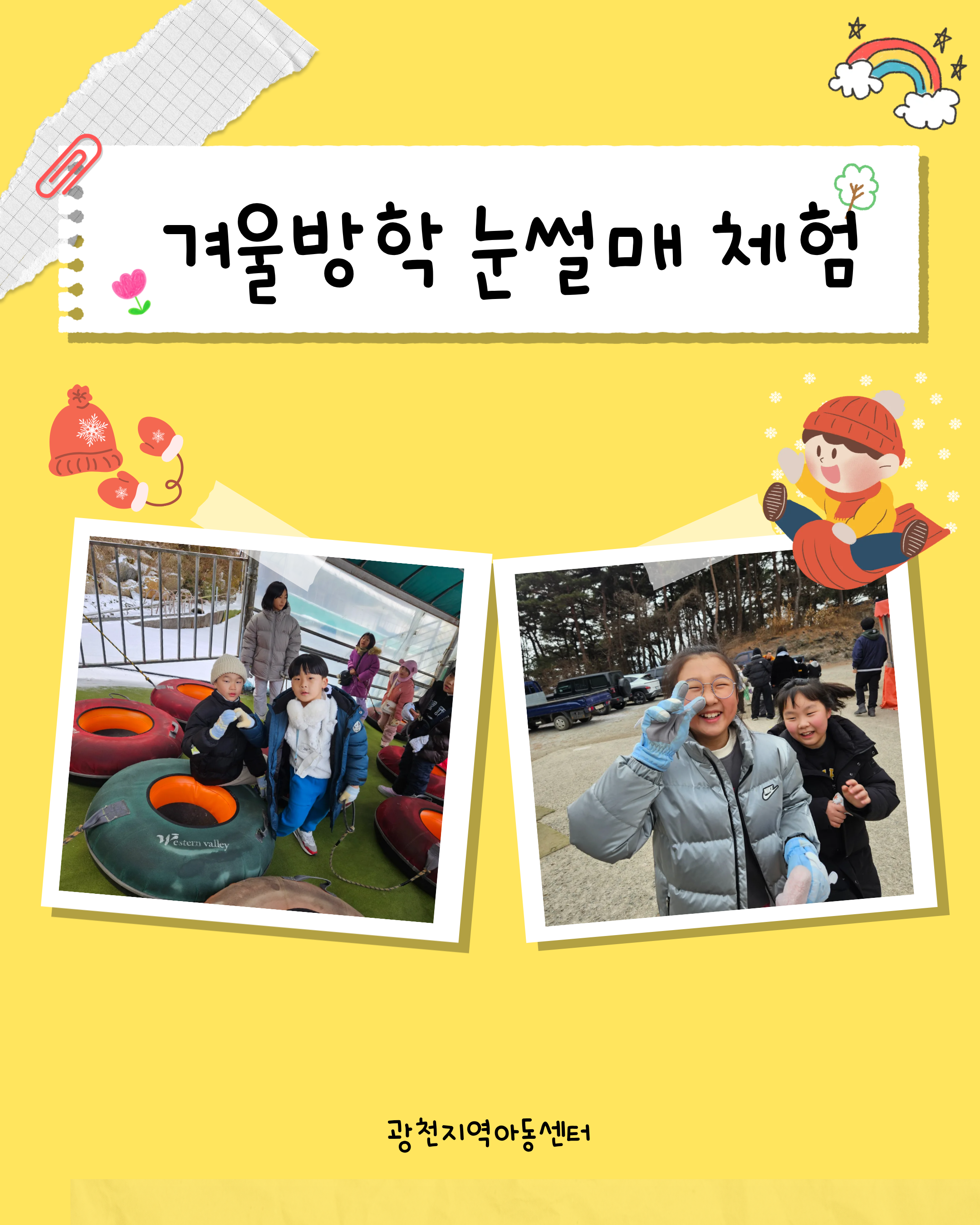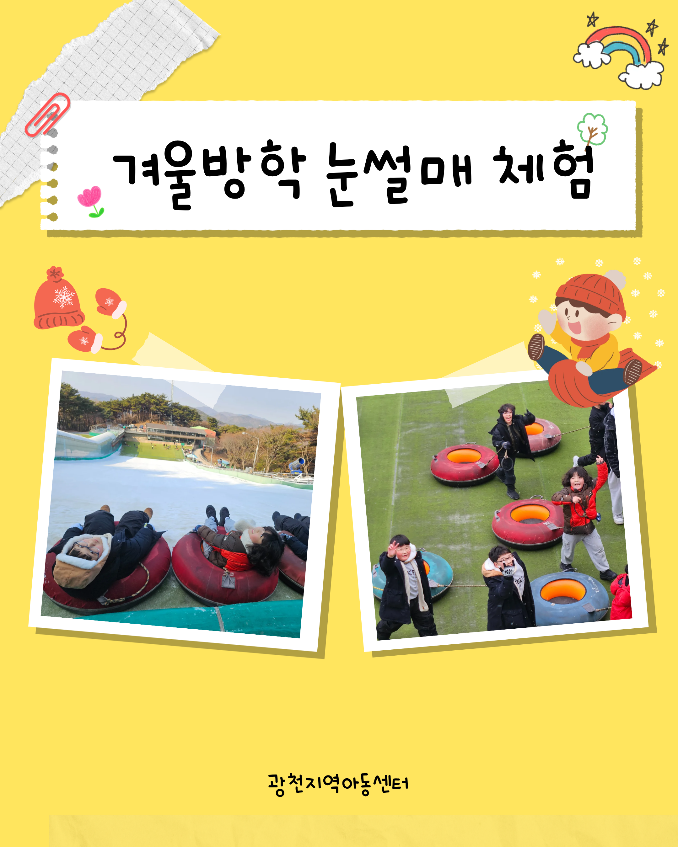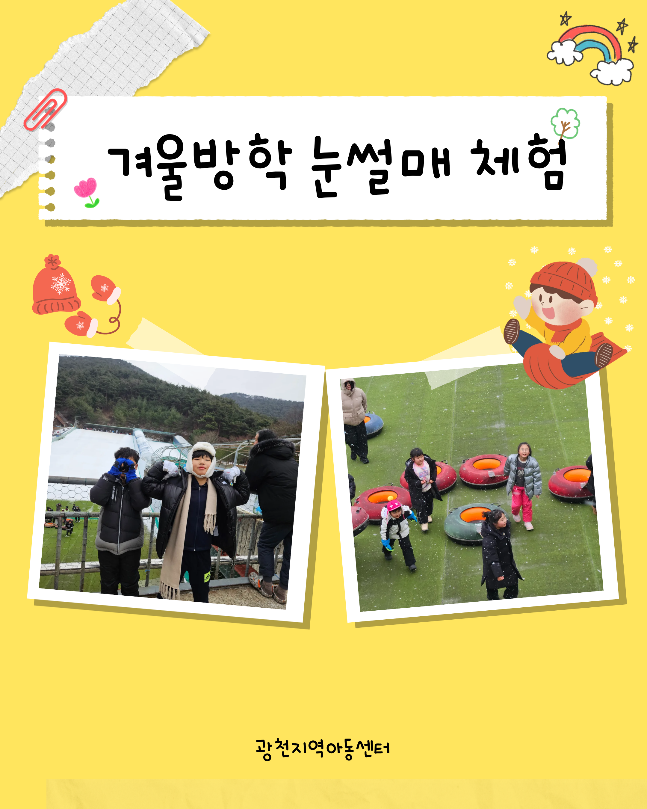 | 제 목 : 01.23 겨울 눈썰매 체험 | 조회수 : 42 |
