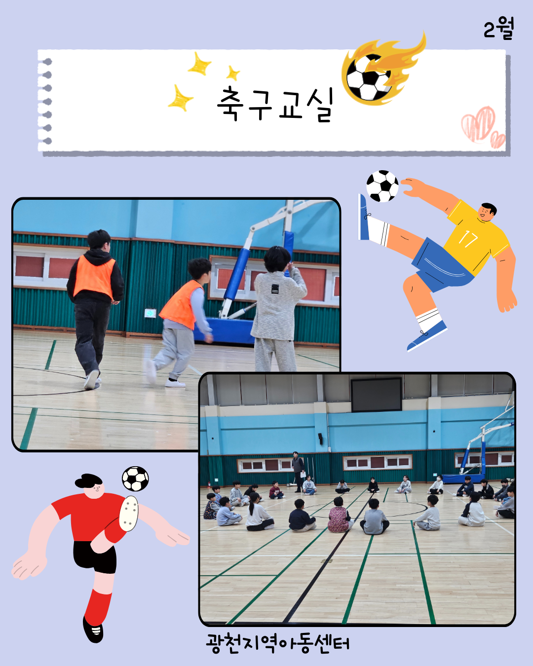 패스와 슈팅을 연습하며 협동의 중요성을 배우고, 경기 속에서 서로 응원하고 함께 뛰면서 한 걸음 더 성장하는 시간을 보냈습니다.