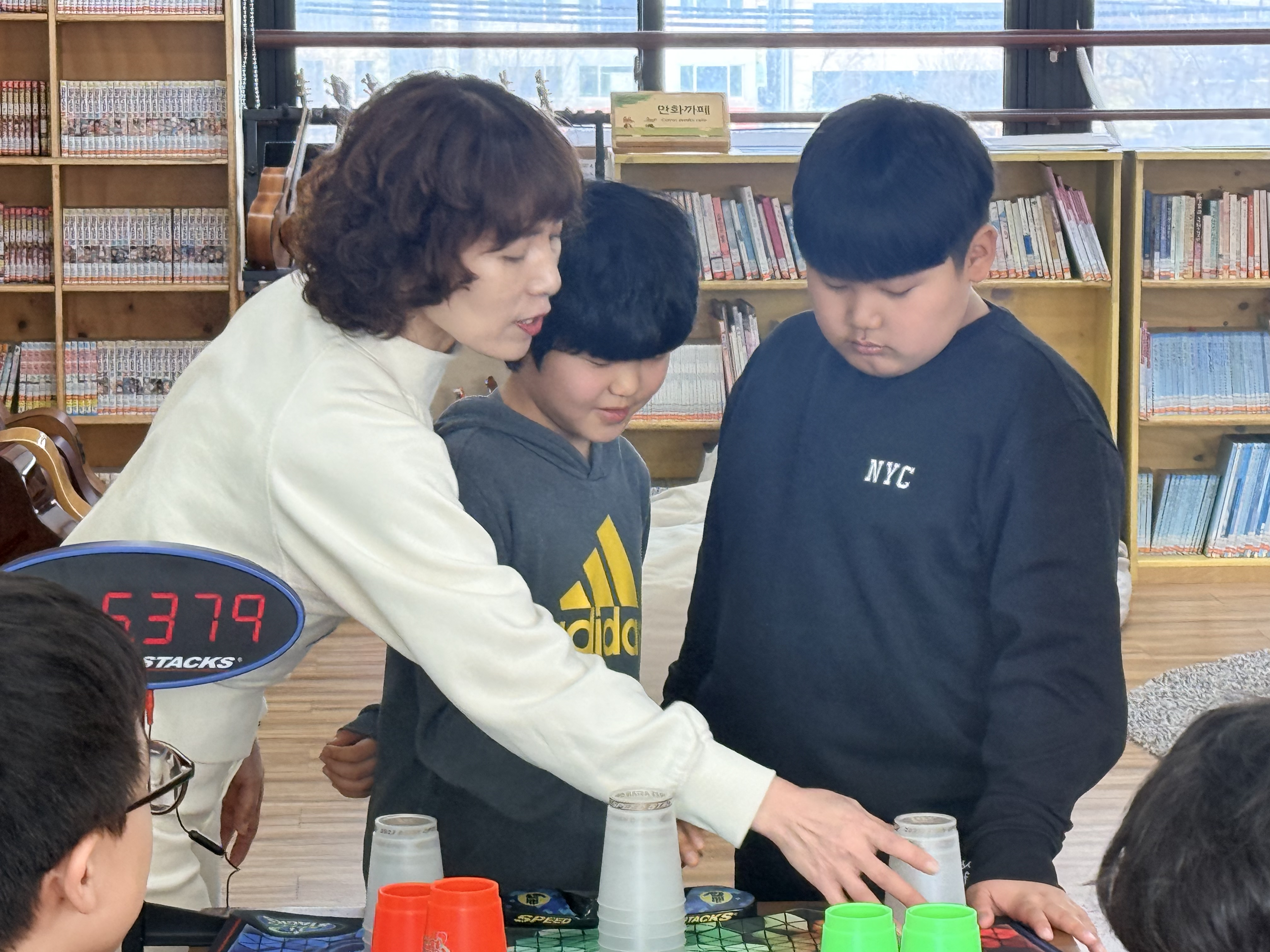 기본 스포츠스태킹으로 손을 풀고,