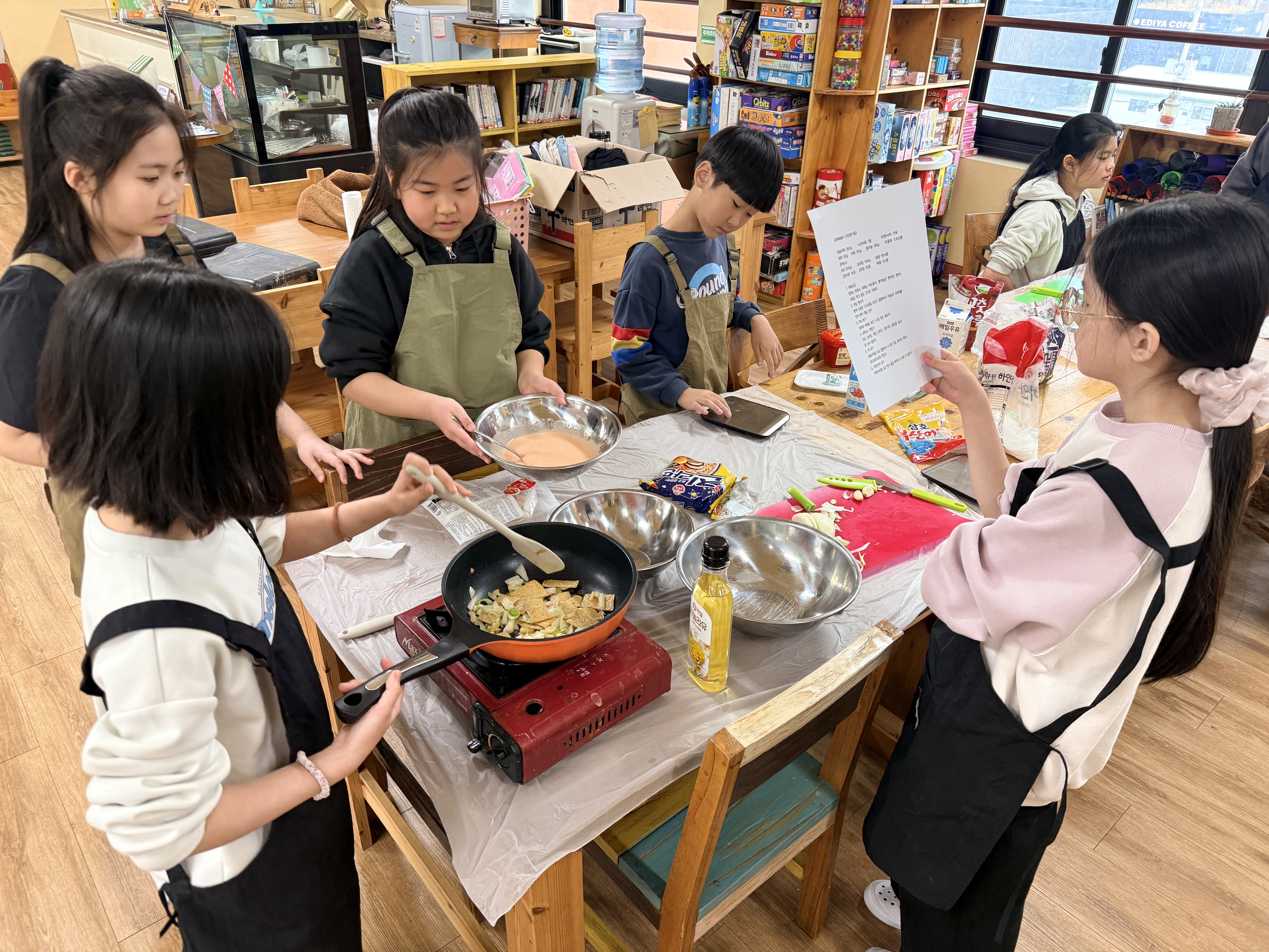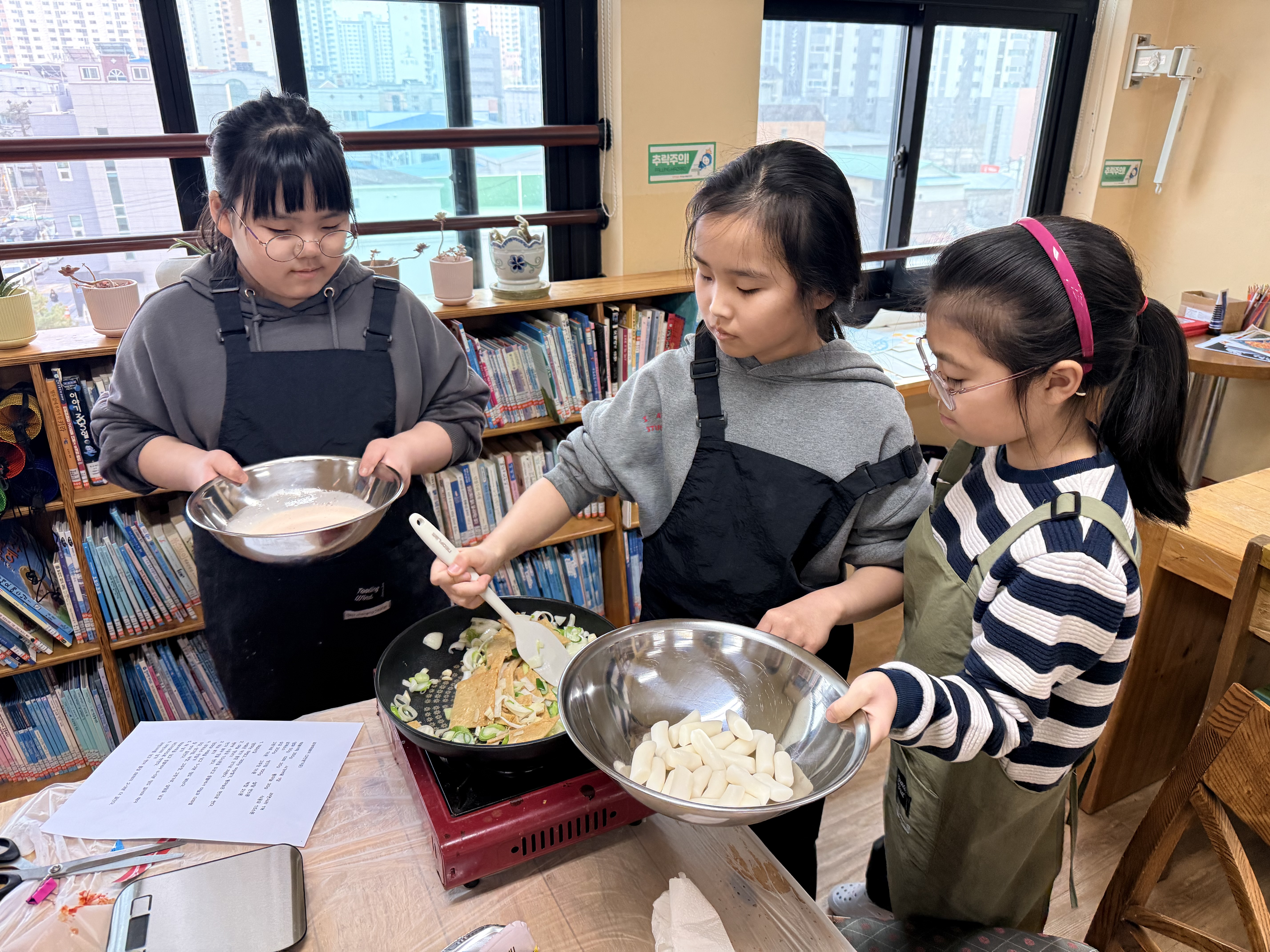 무엇보다 안전을 최우선으로 서로 도우며 요리를 진행했답니다.