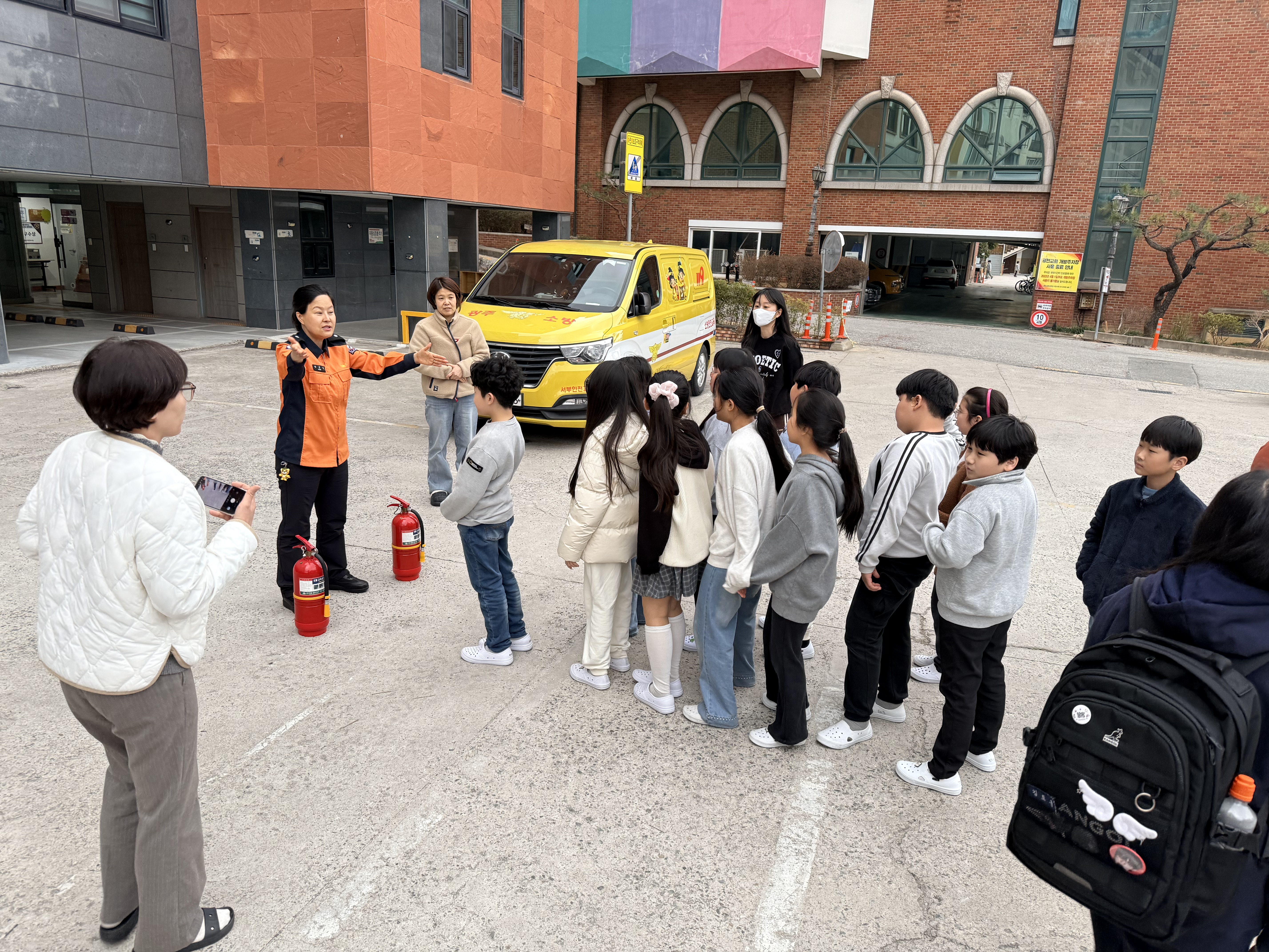 이번 훈련은 광주서부소방서 소방관이 직접 방문해 진행해 주셨으며, 화재 발생 시 반드시 알아야 할 비상대피 요령, 소화기 사용법, 완강기 사용법 등을 배우는 시간을 가졌습니다.