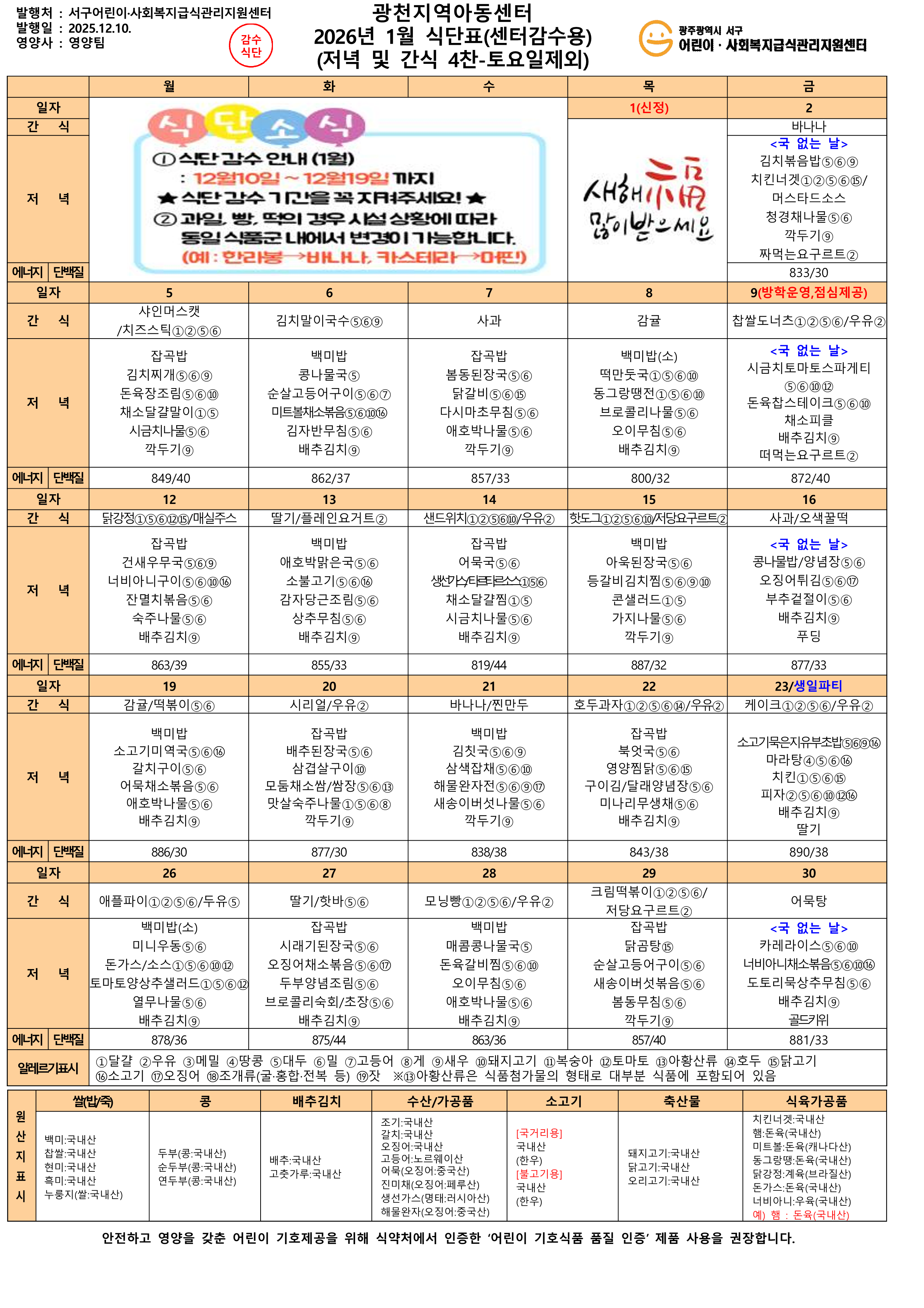 2025년 12월 월간 프로그램 및 식단표